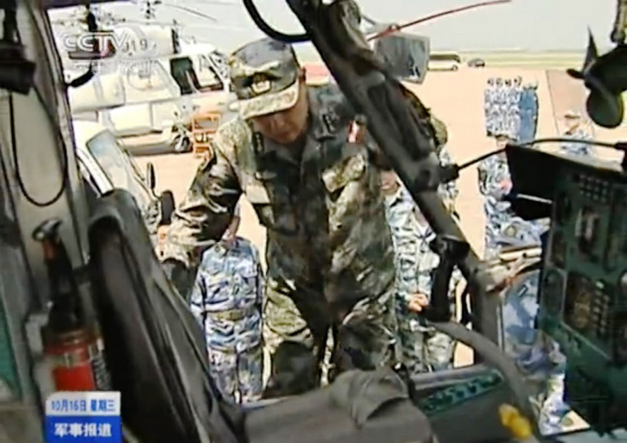 范长龙登上卡-28反潜机参观体验