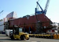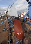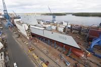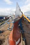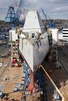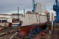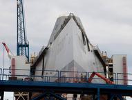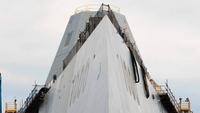据来自美国巴斯钢铁公司的最新图片显示,美国最新研制的DDG-1000型朱姆沃尔特号驱逐舰已经完成舰体建造和涂装工作,准备下水。