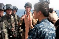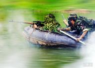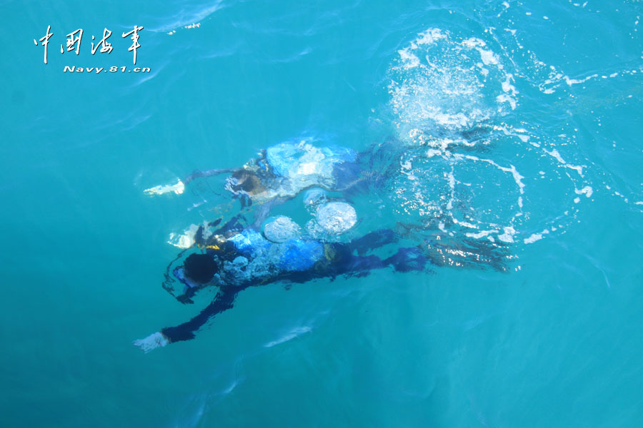 2013年6月中旬,海军陆战队训练中,特战分队兵分三路从空中、水面、水下联合出击登船解救人质。