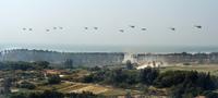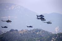 10月20日,在“使命行动—2013B”跨区机动战役演习中,空军战机临空为登陆部队提供火力支援。电磁空间,电子对抗、网络攻防激烈展开;水际滩头,信息火力一体打击,两栖精兵突击上陆;敌后丛林,特战尖兵从天而降…… 20日上午,东南沿海某地,“使命行动—2013B”跨区机动战役演习实兵实弹演练全面打响。 新华社记者 李宣良 摄