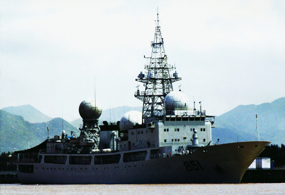 图片为我军“北极星”号情报收集船(曾用编号:东调232),由沪东造船(集团)有限公司建造,于1999年下半年服役于东海舰队。该舰的主要任务是进行电子信号情报的监听和分析,也可能还包括在战术弹道导弹试验时进行导弹轨迹测量和追踪等任务。船上可搭载直升飞机(有机库)。后进行了改装,原碟形天线被三个大型天线罩代替。
