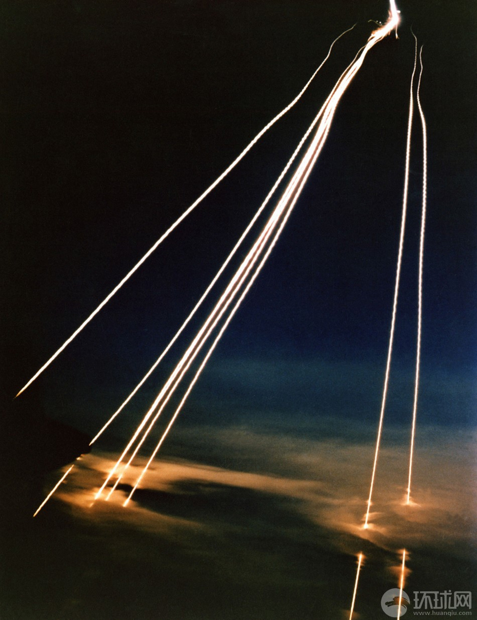 航天九院从70年代中期开始研制为二代战略核武器配套的核弹头,80至90年代先后突破了初级小型化和次级小型化,随后又进行了一系列安全性和可靠性试验。其中初级设计采用了非球对称构形,有利于将核装置塞进RV狭窄的鼻锥部。(图为美国“和平保卫者”MX导弹分导弹头重返大气层在大气中划出的光带,中国核导弹的情况类似)