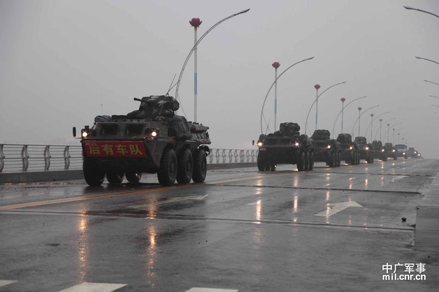 参演的步战车编队快速向集结地域机动
