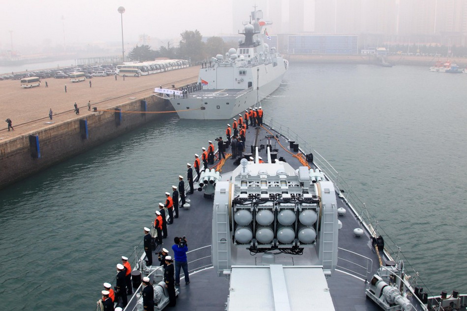 此次舰艇编队出访官兵共有680多人,携舰载直升机一架,8月20日从青岛出发,历时76天,总航程19000余海里,期间两次跨越国际日期变更线,横跨6个时区,两次穿越赤道。图为11月3日,导弹驱逐舰青岛舰徐徐驶抵青岛某军港。新华社记者 查春明 摄