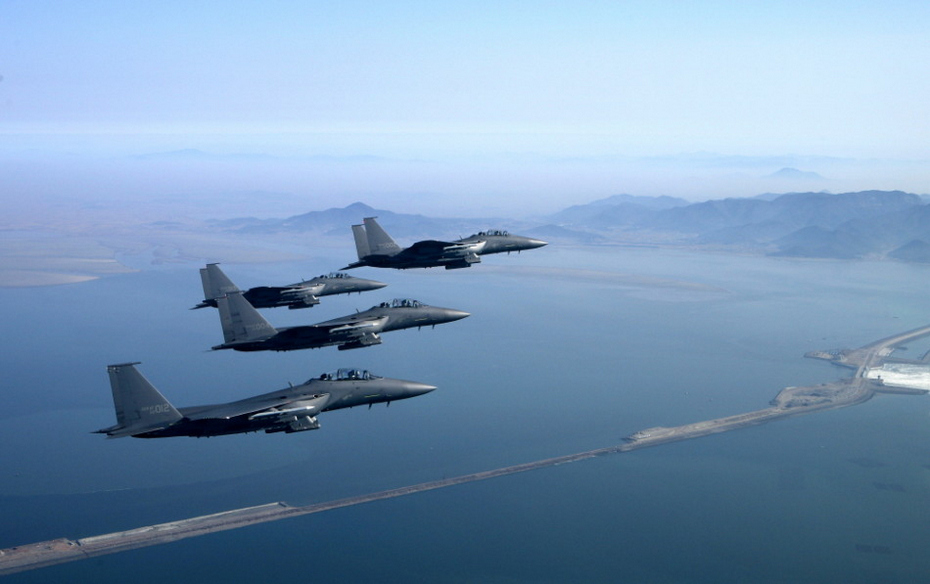 在东亚,韩国F-15K和日本F-15SG战斗机长期处于一统东亚天空无人能敌的局面。图为韩国空军装备F-15K战斗机。