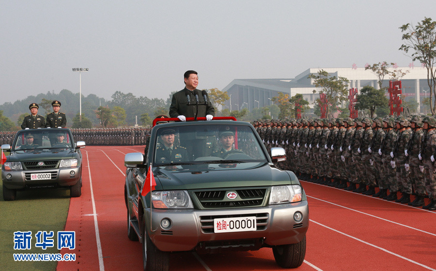 11月5日,中共中央总书记、国家主席、中央军委主席习近平在国防科学技术大学视察。这是习近平检阅国防科学技术大学干部和学员方队。新华社记者李刚摄