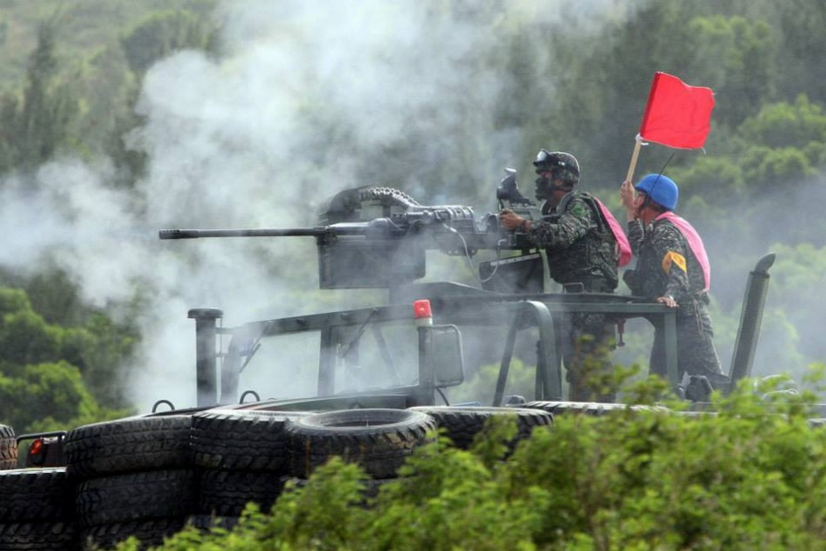 台湾三军联演 “红军”部队身披粉红马甲