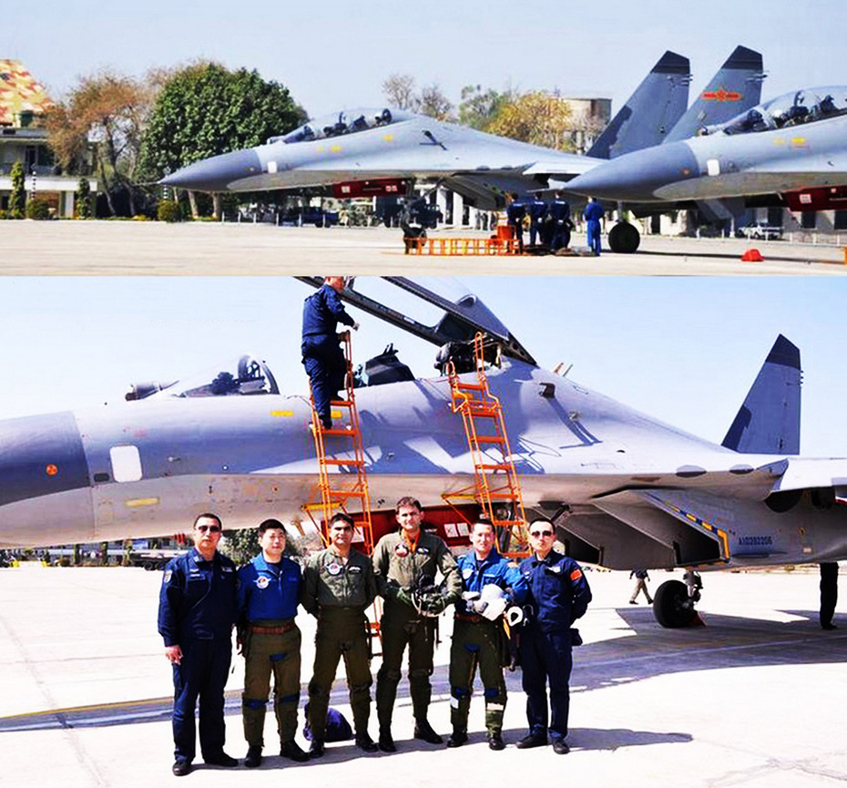 2011年中巴两国空军在巴基斯坦境内举行“雄鹰-1”联合训练,图片为两国战机飞行员在我军苏-30MK战斗机前合影。