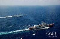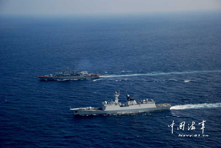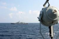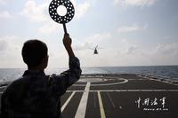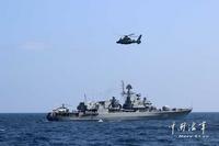 首先进行的是海上联合搜救演练,演练以中乌两国护航舰艇对某国商船实施人道主义救援为背景。9时30分,联合搜救演练在衡水舰的指挥下正式展开。接到商船求救信号后,两舰在加强对海面搜索观察的同时,命令舰载直升机迅速起飞,进行舰机联合搜救。
