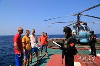 30分钟后,衡水舰舰载直升机发现了模拟的落水船员,空中救援小组立即组织打捞,并后送至萨盖达奇内号导弹护卫舰。