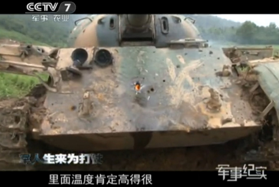 59坦克前部装甲被穿甲弹击穿