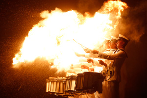 夜雾渐浓,绵延不绝的桐柏山笼罩在夜色中。突然,炮声轰鸣,火光冲天。代号为“联合·决胜-2013”的夜间实兵演习在这里打响。