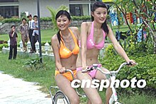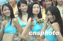 2003年新丝路模特大赛总决赛十四日晚在三亚天涯海角举行,五十一名佳丽参加角逐。来自湖南的肖青获得冠军,谷雨、姚瑶获得 亚军,罗君、张小雯以及来自台湾的吴育臻获得季军。 (点击图片看大图)