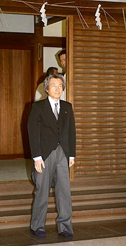 2001年8月,小泉在8月15日日本二战投降纪念日前两天参拜靖国神社,这一举动立即引起了中国和韩国政府的抗议。去年4月,小泉未经宣布再次参拜靖国神社,希望能够淡化这一举动产生的影响,但是中国政府仍然对此表示强烈抗议,并推迟了日本防务相访问中国和中国海军舰队出访日本的时间。