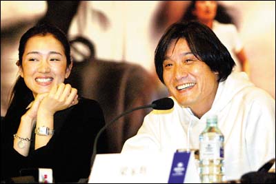影片中有不小篇幅的情爱戏场面,于是更有人借发布会“装傻充愣”硬生生地问巩俐:“随着电影审查制度的放宽,你的激情戏尺度是不是也放宽了?”巩俐闻言先是大笑:“我的激情戏尺度跟着政策放宽?”接着正色道:“每部言爱的电影,角色间多多少少都有一些身体接触,例如拥抱、接吻。以前的做法很极端,将这些镜头都剪掉,其实是不对的。因为这些是人的本性,是美的、自然的,所以拍得健康的镜头应该保留。我们这部影片中的激情戏,就拍得很美,没有一点让人觉得不干净。”孙周又接话茬儿:“我们是真诚地在拍三个角色的感情,也是真诚地在拍那些身体接触的镜头。拍激情戏的那一些瞬间,要求演员要忘掉自己,真实地按感觉去走,而不是考虑着审查的问题去拍。当时我们清了场,摄影机里胶片也一直不停地转,就这么让两人死缠在一起。可以说,如果要‘下去’,两人完全可以继续‘下去’。最首要的,我们要让‘情到了’的镜头出现,相信这个过程下选取的镜头才是准确的。”