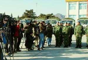 戴大校还回答了记者的提问。记者还参观了工兵连此次所携带的工程装备器材,并现场采访了部分参加维和任务的官兵。