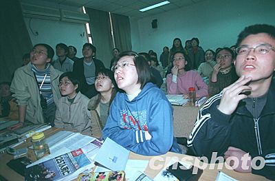 图为清华大学新闻系正在上课的学生得知该消息后感到非常惊讶。作者:张勤