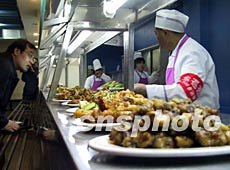 餐厅的服务人员说,今天的饭菜有300多种,和平时一样多。