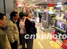 广州市民二十日在商场里观看电视报道美对伊开战消息,但反应十分平静。作者:刘卫勇