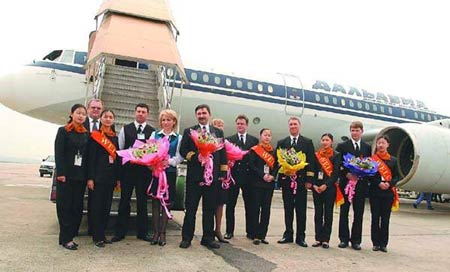 据悉,图—214客货两用机是目前俄罗斯最先进的机型,二00一年正式投入使用,全球仅有四架。乘坐这一航班首次来到中国的妮拉向记者介绍说:“这种飞机很舒服,不愧是俄罗斯最先进的。”
