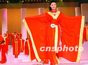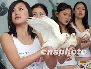 由广东电视台主办、中国概念九八模特经纪有限公司协办的“纳爱斯雕牌2003超级模特选拔赛”,三月二十二日在广州进行决赛,此次参赛的四十六名佳丽,年龄最小的十四岁,最大的二十二岁,平均身高为1.77米。中新社传真 钱兴强 摄