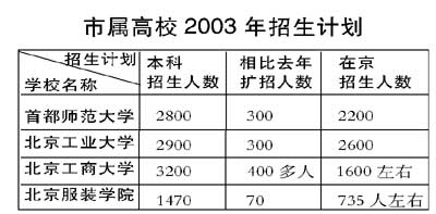 中新网3月30日电 据北京娱乐信报报道,二十所部属、市属高校今年在京招收的本科人数已经确定。今年,部属院校基本上都不扩招,市属高校则适当扩招。招生人数详见右表。