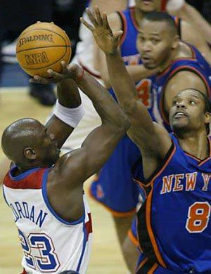 乔丹十七日将前往费城,在那里进行他的告别美国职篮NBA舞台之作,今天赛前并由美国国防部长伦斯斐致赠一面九一一恐怖攻击事件后飘扬在五角大厦上的美国国旗,以表示对他的崇敬,全场爆满的二万多名球迷也数度起立鼓掌欢呼。