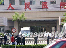 北京晚报报道说,据一位目击者称,今天上午8时刚过,大批戴着口罩的民警、保安以及医务工作者来到人民医院的东门外,沿着医院门前人行道上的树木拉起了警戒线。警戒线从医院东门一直向两边延伸,直拉到无法进入医院的高墙外。在拉警戒线的过程中,有患者的家属希望进入医院看望患者,但都被民警劝走了。