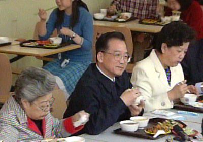 温家宝与北大学生共进餐 强调同舟共济战胜灾害