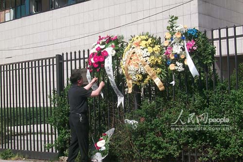 中新网5月7日电 人民网贝尔格莱德消息:中国驻塞尔维亚和黑山大使馆全体工作人员、中国驻塞黑全体新闻工作者和旅南华人华侨代表今天上午在中国驻南大使馆馆舍废墟前集会,沉痛哀悼在1999年美国轰炸中牺牲的3名中国烈士。