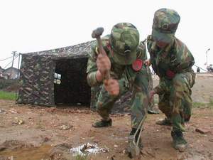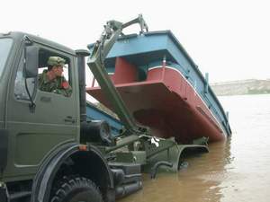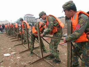 中新网5月16日电 据湖南《东方新报》报道,在浏阳河训练码头的空地上,随着军官一声令下,不到半个小时,200余名官兵就竖起了面积近30平方米的军用帐篷、可照射直径达60米范围的多功能照明灯、一条近20米长、1米高的防洪子堤。昨日上午,驻湘某舟桥团出动20余台舟桥车辆,首次利用新式器材进行防洪大演练。