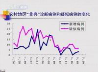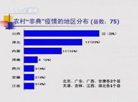 从全国农村非典疫情地区分布来看,75个县中22个在山西省,山西占了75个县的29%,17个在河北,占23%,11个县在内蒙古,占15%。也就是说,农村非典疫情地区主要集中在华北地区,尤其是山西、河北和内蒙古的农村地区。