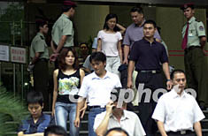 六月九日下午,孙志刚案在广州中级人民法院进行一审宣判。图为一群旁听人员步出法庭。作者:陈文
