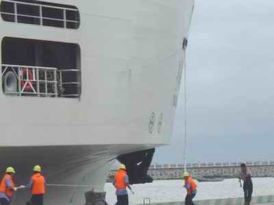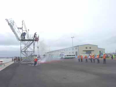 码头工人第一次给粤海铁2号系揽(中广网图片)