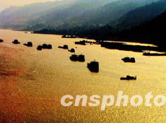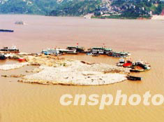6月13日,三峡蓄水进入笫13天,可能是受到上游洪水的影响,整个库区江水一夜之间突然由清澈变为浑浊金黄色,成为一道别致的三峡景观。作者:周会