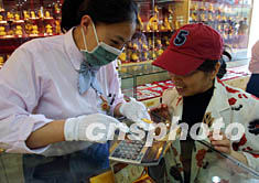 图:北京消费者谨慎面对金条回收。中新社记者 廖文静 摄