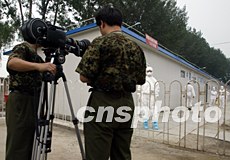 小汤山医院将在20日送走最后一批SARS康复患者后结束光荣使命,18日军方摄影师在隔离区认真记录该医院的最后时刻。中新社记者:任晨鸣