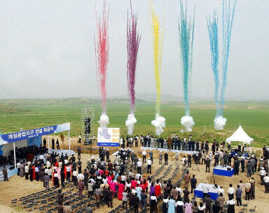 开城工业园区位于平壤东南方170公里、汉城西北方70公里,占地约6600平方米。该工业园区投资2200亿韩元,工程计划于2007年完工。