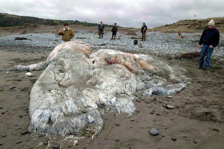 这块生物体的特征与19世纪科学家描述的罕见生物相符。据当时科学家的描述,人们用大队马群拖曳一只长达18米的动物,而用斧子砍它却不见砍痕。