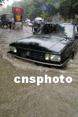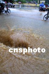 今天早晨可以看到,南京城区几乎所有路面都有积水,不少地段水深超过半个自行车轮子,下关一些街道的积水甚至深达一米多,公交及出租车在水中缓慢移动着,路边随处可见排气管进水抛锚的车辆。在新街口至中央路一线,多处路段水深过膝,不少赶时间的市民们艰难地涉水前行。