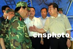 中新网7月6日电 昨天(5日)下午3时30分,中国国务院副总理回良玉赶赴淮河安徽临水镇陈村险段,在淮河抗洪防汛一线鼓舞士气。