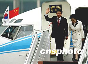 多图:韩国总统卢武铉抵京 开始其访华行程