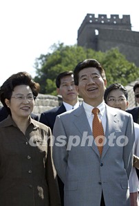 正在北京访问的韩国总统卢武铉与夫人及其随行人员九日登上北京八达岭长城。中新社记者:毛建军