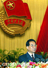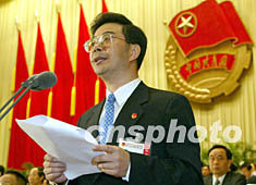 今天上午大会的内容是:首先由少先队员向大会献词,唱中国共青团代团歌,中共中央领导向团十五大致祝词,人民团体代表致贺词。最后由团中央第一书记周强代表团十届中央委员会做报告。