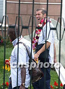 齐达内进入驻地笑逐颜开。中新社记者:毛建军