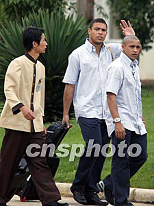 罗纳尔多与卡洛斯一起进入驻地。中新社记者:毛建军