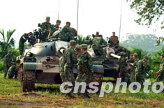 八月的海南五指山区某装甲部队顶着高温烈日艰苦训练。作者:蒋聚荣