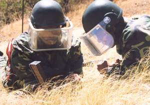 根据中国和厄立特里亚两国政府达成的协议,国务院、中央军委于2002年底开始,先后两次派出以成都军区扫雷专家为主的专家组,赴厄执行国际人道主义援外扫雷任务。期间,中国专家组培训厄方121名学员,并对4片山地雷场和两条公路进行了指导性扫雷,共扫除防坦克和防步兵地雷近千枚,扫除雷区面积近20万平方米。所扫过的雷场经过当地政府验收,无残留地雷,未损坏一棵树木,中厄双方均无一伤亡,达到了国际扫雷标准。联合国发展计划署和扫雷行动合作中心等有关方面的官员到现场观察扫雷作业后,赞扬中国专家组扫雷质量高、速度快,既环保、又经济。