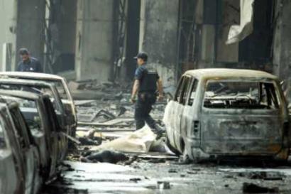 爆炸发生后,被炸的汽车伤痕累累