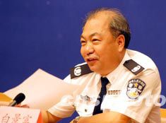中国公安部副部长白景富八月七日在北京召开中外记者新闻发布会,公布中国公安部即将推出的关于户政、出入境和交通管理等方面的新措施。中新社记者 任海霞 摄
